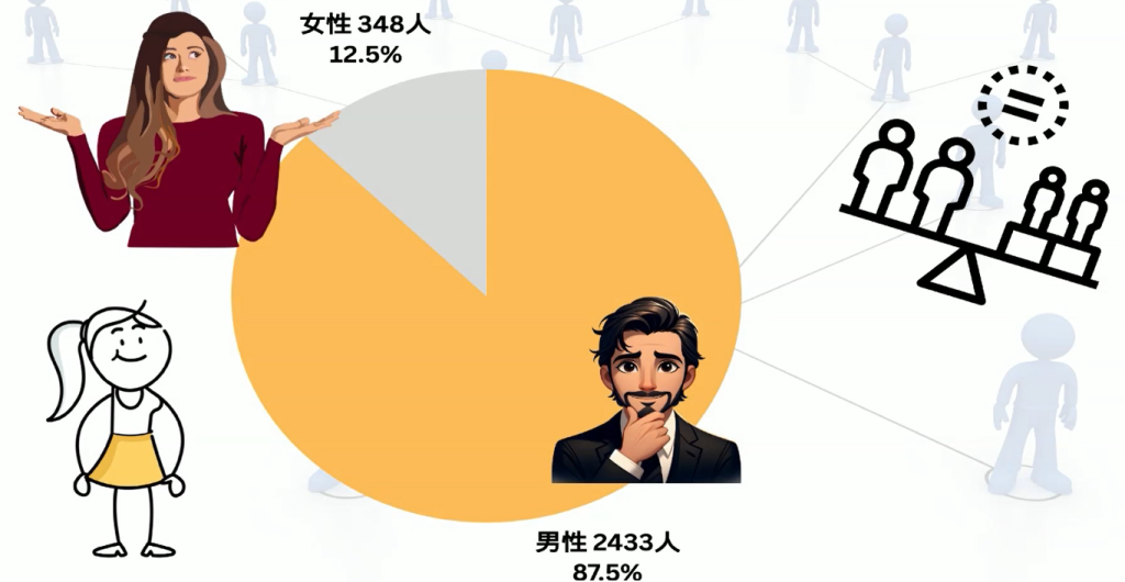 ■ 男性 87.5%・女性 12.5%──際立つジェンダーギャップ